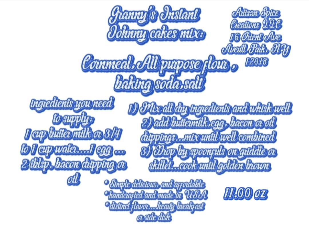 Artisan Spice Creations LLC "Granny's Instant Johnny Cake Mix "is the perfect